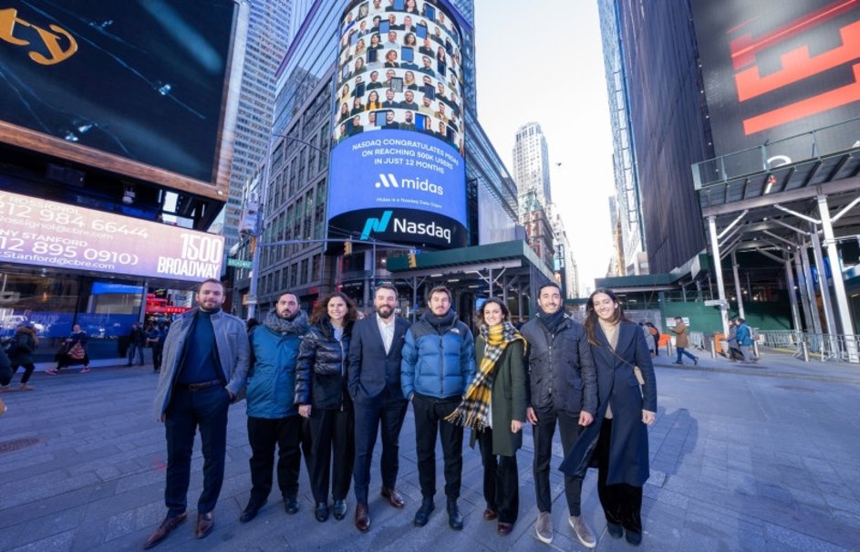 Amerikan borsaları ve Borsa İstanbul'a tek uygulama üzerinden yatırım yapma imkanı sunan Midas'ın, 2022'de 10 kat büyüyerek 500 bin kullanıcıya ulaşması, Amerika'da da ses getirdi. Nasdaq, Midas'ın Amerikan Borsalarının ardından Borsa Istanbul hisselerinin de uygulamaya gelmesiyle büyümesini, New York Times Meydanı'ndaki binasındaki dev ekrandan kutladı.