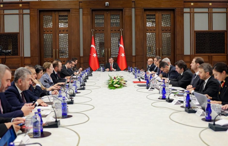 Cumhurbaşkanı Yardımcısı Cevdet Yılmaz'ın başkanlığında Cumhurbaşkanlığı Külliyesi'nde gerçekleştirilen toplantıya; Hazine ve Maliye Bakanı Mehmet Şimşek, Sanayi ve Teknoloji Bakanı Mehmet Fatih Kacır, Ticaret Bakanı Ömer Bolat, Enerji ve Tabii Kaynaklar Bakanı Alparslan Bayraktar, Çalışma ve Sosyal Güvenlik Bakanı Vedat Işıkhan, Türkiye Cumhuriyet Merkez Bankası Başkanı Hafize Gaye Erkan, Cumhurbaşkanlığı Strateji ve Bütçe Başkanı İbrahim Şenel de katıldı.