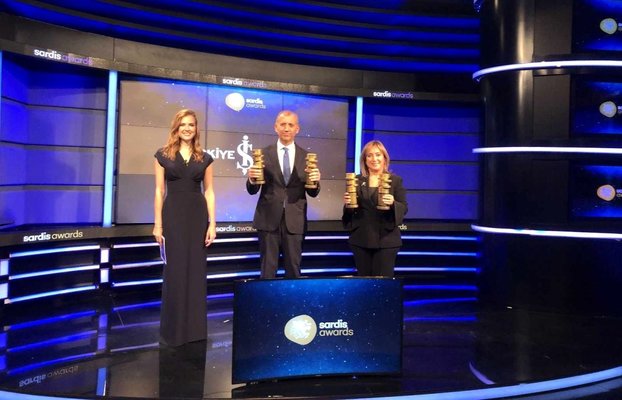 Sardis Ödülleri'nde İş Bankası sürdürülebilirlik, sosyal sorumluluk, finansal teknolojiler, girişimcilik, yapay zeka alanlarında hayata geçirdiği yenilikçi projelerle 4 büyük ödül, 8 Altın Sardis, 5 Gümüş Sardis olmak üzere toplam 17 ödül aldı. Ödül törenine İş Bankası Genel Müdür Yardımcıları Yalçın Sezen ve Ebru Özşuca katıldı.