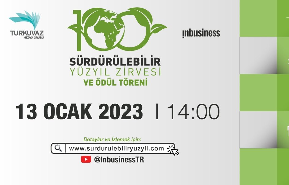 Turkuvaz Medya Grubu’nun ekonomi dergisi Inbusiness’ın düzenlediği “Sürdürülebilir Yüzyıl Zirvesi” T.C. Çevre, Şehircilik ve İklim Değişikliği Bakanı Murat Kurum’un katılımıyla 13 Ocak 2023, Cuma Turkuvaz Medya Center’da gerçekleştirilecek.