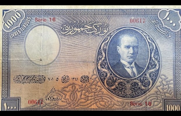 Koleksiyoncular tarafından Türkiye'nin en değerli banknotu olarak nitelendirilen İngiltere basımı 1. emisyon 1000 lira, müzayedede satışa çıkarıldı. Tedavüle çıktığı 1927 yılında 1000 Cumhuriyet altını karşılığı olan tarihi para, müzayedede 800 bin lira açılış fiyatıyla yeni sahibini arıyor.