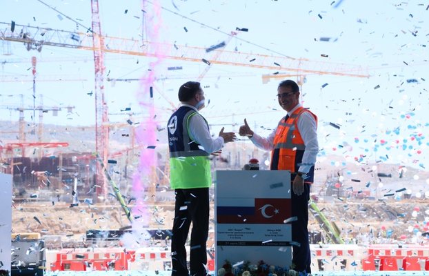 Mersin'in Gülnar ilçesinde yapımı süren Akkuyu Nükleer Güç Santrali'nde 4'üncü ünitenin temeli, Enerji ve Tabii Kaynaklar Bakanı Fatih Dönmez ile Rusya Devlet Atom Enerjisi Kurumu Genel Müdürü Alexey Likhachev'in katılımıyla atıldı.