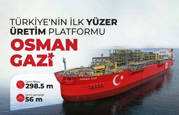 Bakanlığın, X sosyal medya platformundan yapılan paylaşımda, "Yeni dönemin adı: Osman Gazi, Rota: Karadeniz, Hedef: Tam Bağımsız Türkiye! Türkiye'nin ilk yüzer üretim platformu Osman Gazi, Karadeniz'deki doğal gaz üretimimizi iki katına çıkaracak." ifadesi kullanıldı.