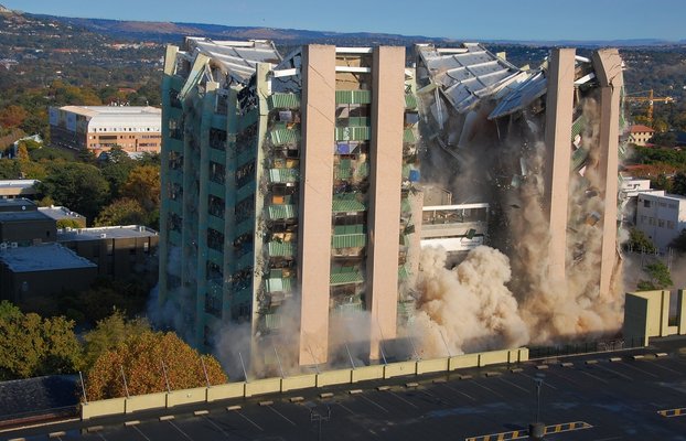 Yıkımdan önce bölgedeki 2 bin hane tahliye edilirken, projede yer alan diğer gökdelenlerin ağır makinelerle yıkılacağı belirtildi.
