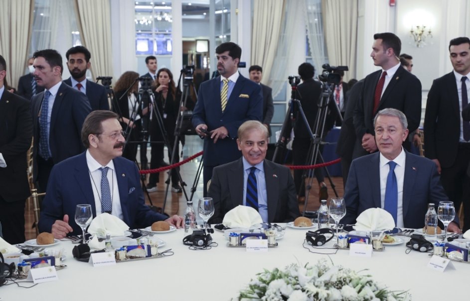 Türkiye Odalar ve Borsalar Birliği'nin (TOBB) ev sahipliğinde gerçekleştirilen Türkiye-Pakistan İş Forumu'na Pakistan Başbakanı Şahbaz Şerif, Milli Savunma Bakanı Hulusi Akar, Ticaret Bakanı Mehmet Muş ve TOBB Başkanı Mustafa Rifat Hisarcıklıoğlu ile çok sayıda iş adamı katıldı.