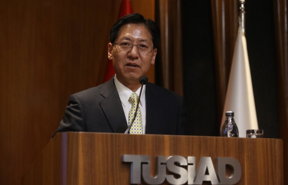 Çin Halk Cumhuriyeti'nin Ankara Büyükelçisi Liu Shaobin konuşmasında "Türkiye ve Çin'in yeni gelişen piyasa ekonomisinde yapacağı iş birliği sadece iki ülkenin faydasına olmayacak, aynı zamanda tüm dünya ve bölge ülkelerinin de yararına olacak" dedi.