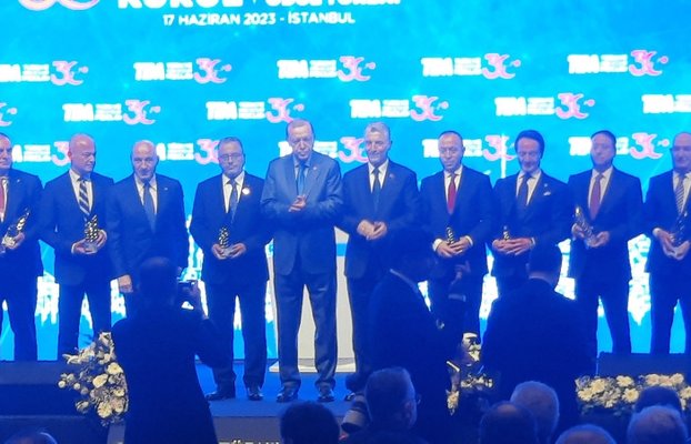 Bugün aynı zamanda başarıyla temayüz etmiş firmaların ihracat şampiyonları olarak ödüllerini takdim ettiklerini anlatan Erdoğan, yaptıkları ihracatla ödül kazanan sektör birincilerini ve en yüksek ihracat yapan firmalarla temsilcilerini kutladı.