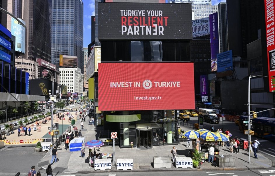 Bu kapsamda, Cumhurbaşkanlığı Yatırım Ofisi'nin "Türkiye: Dayanıklı Yatırım Ortağınız" ve "Invest in Türkiye" mesajları, New York'un dünyaca ünlü Times Meydanı'ndaki dijital panolarda yayımlandı.