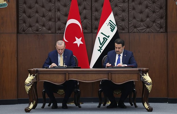 Cumhurbaşkanı Erdoğan ile Irak Başbakanı Sudani arasında, Bağdat'taki Hükümet Sarayı'ndaki gerçekleşen görüşmenin ardından iki ülke arasında gerçekleştirilecek 26 işbirliği anlaşmasına imza atıldı.