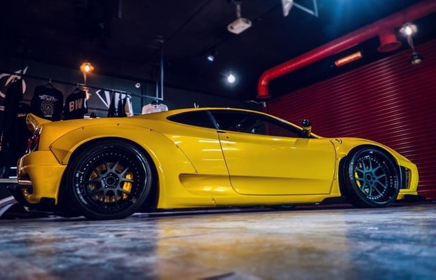 Türk tasarım ekibi, dünyaca bilinen araba markası Ferrari'nin araçlarında dizayn değişikliği yapıyor. Firma, aracı genişletebilmek adına 4 çamurluğu jet taşı ile kesti.
