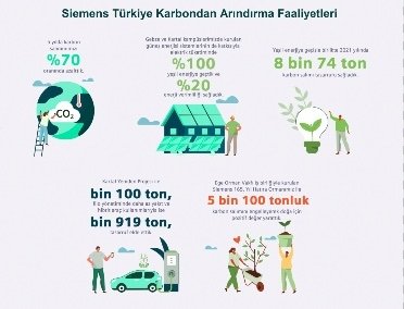 Siemens Türkiye, kendi kampüslerinde kullandığı elektriğin yüzde 100'ünü yenilenebilir enerjiden karşılayarak ve verimlilik projeleri hayata geçirerek son 5 yılda karbon salımını yüzde 70 oranında azalttığını açıkladı. Siemens Türkiye Yönetim Kurulu Başkanı ve CEO'su Hüseyin Gelis, konuyla ilgili, "Yeni sorumlu büyüme stratejimizin en önemli bileşenlerinden biri karbondan arındırma. Son 5 yılda bu alanda hedeflerimizin ötesine geçen bir başarı elde ettik" dedi.