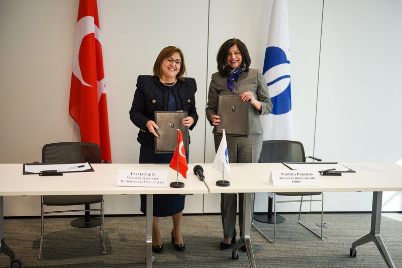 Gaziantep Büyükşehir Belediyesi (GBB) şehrin yeşile geçişte kapsamlı bir yatırım programına dahil edilmesi için Avrupa İmar ve Kalkınma Bankası (EBRD) ile güçlerini birleştirdi. GBB Başkanı Fatma Şahin ve EBRD Sürdürülebilir Altyapı Yönetici Direktörü Nandita Parshad Londra'daki EBRD merkezinde anlaşmayı resmileştirdi.