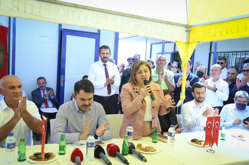 BÜSEM'in altyapısı için Gaziantep Büyükşehir Belediye Başkanı Fatma Şahin'in İller Bankası, Milli Emlak ve Altyapı Kentsel Dönüşüm Genel Müdürlüğü ile birlikte bir uyum içerisinde çalışmalarını sürdürdüğünü aktaran Bakan Kurum, "Amacımız, Gaziantep'imizi bu bölgenin üreten ve yıldız şehri Gaziantep'i çok daha yukarılara taşımak. Hep birlikte sizlerle ülkemizi muasır medeniyetler seviyesine çıkaracak, üreten şehir Gaziantep'i çok daha yüksek noktalara taşıyacak adımları atıyoruz, atmaya da devam edeceğiz." diye konuştu.