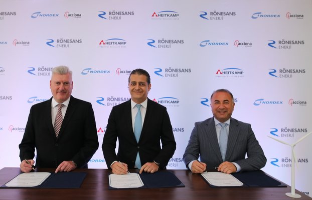 Yapılan açıklamaya göre, Singapur Devlet Yatırım Fonu (GIC), Paris merkezli altyapı fonu Meridiam ve Japonya merkezli ticaret devi Sojitz Corporation gibi ortaklarla hayata geçirdiği başarılı iş birlikleri ile öne çıkan ve Dünya Bankası'na bağlı Uluslararası Finans Kurumu'nun (IFC) da hissedarı olduğu Rönesans Holding'in iştiraklerinden Rönesans Enerji, Almanya merkezli Nordex Grup ile Türkiye'de hayata geçirilecek 189 MW'lık rüzgar enerjisi yatırımı için anlaşmaya vardı.